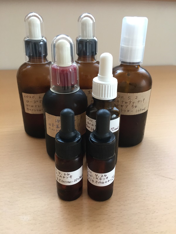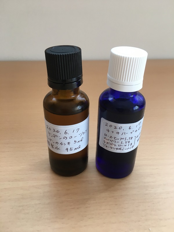 リンデンの化粧水 と 4つのハーブの化粧水(ローズヒップ、マルベリー、ラズベリーリーフ、ジャーマンカモミール)